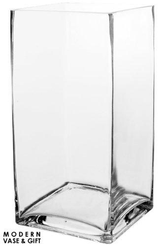 Square Vase, Clear Glass. H-12", Open 6" x 6" (6 pcs). Purchase a square block glass vase for a square table and decorate it by filling the base of the vase with sand, pebbles, marbles, pins or any types of dry filler and then upgrade it with flowers, leaves, ferns, pine, fruits like lime, oranges and grapes to it cut in different shapes.You will not be disappointed with